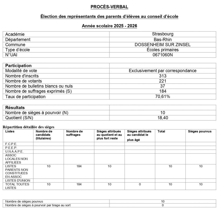 Les élections des représentants des parents d’élèves ont eu lieu vendredi 10 octobre 2025.