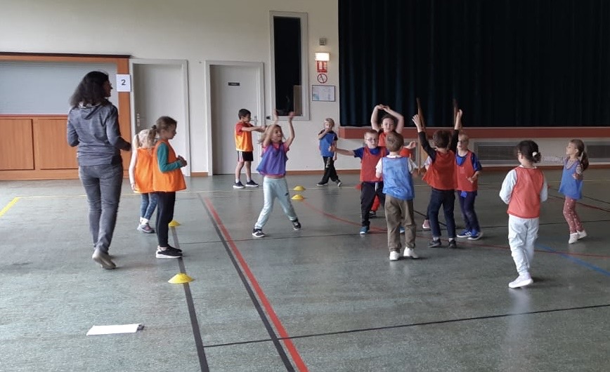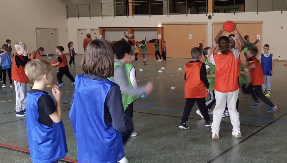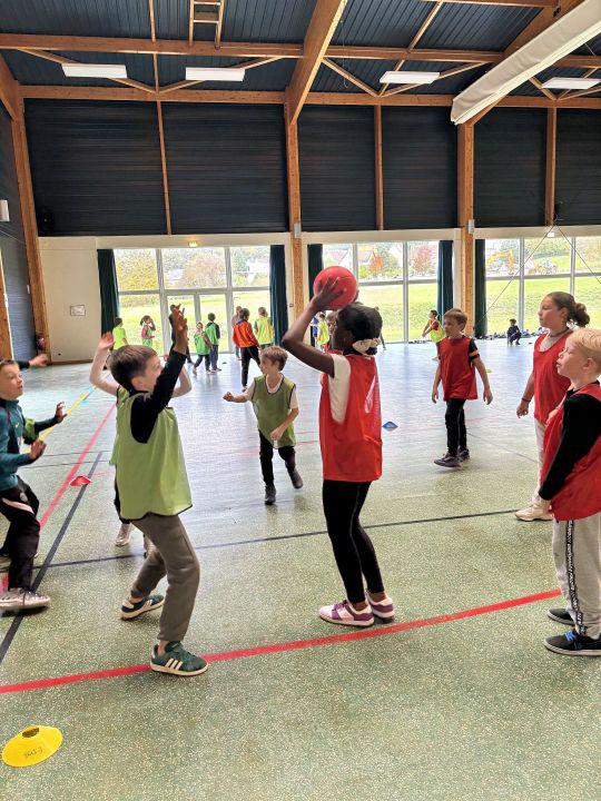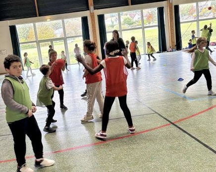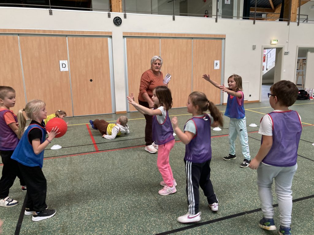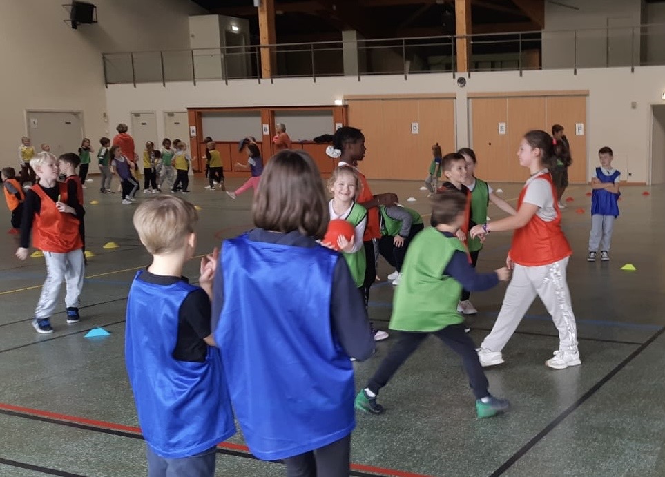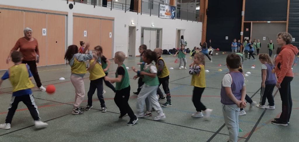 Jeudi 16 octobre l’après-midi a eu lieu à Dossenheim une rencontre sportive autour d’un jeu d’équipe proche du handball.