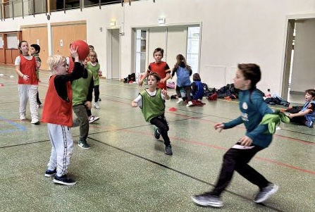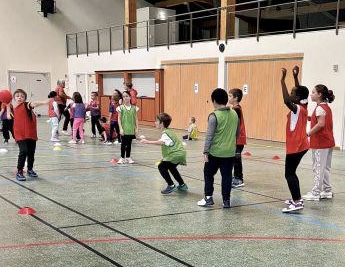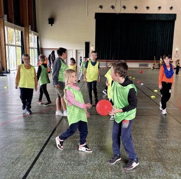 Les classes de CE2/CM1 Mme Reinhard de Hattmatt, de CE1/CE2 de Mme Taveneaux de Weiterswiller, les CE1/CE2 de Mme Daul et les CP de Mme Welterlin de Dossenheim se sont toutes retrouvées à la salle de la Zinsel à Dossenheim pour jouer ensemble en équipes mixtes au même jeu intitulé « la balle au capitaine ».